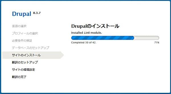 DBユーザーでコンソールから、上記の SQL文を実行して変更します。これで後は最後までスムーズにインストールが進みました。昔の印象だとすごく時間が掛かっていたのも、今では WordPress と同じ位で終わります。