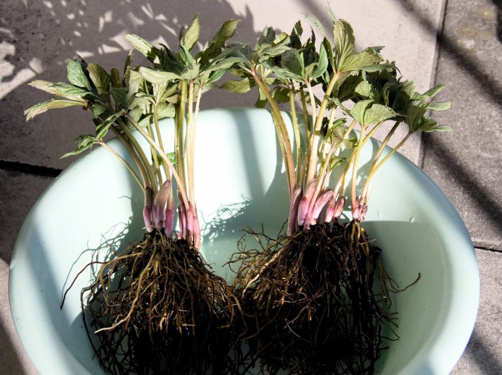 左の株が9芽、右の株が13芽とかなりの芽数でした。株は自然に分かれる状態に生長していましたので、地下茎の切り口はほとんどありません。種類によっては切り口に殺菌剤を塗った方がよい場合もあります。