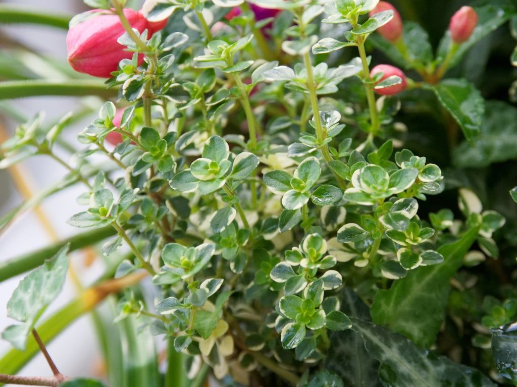 ハーブの中ではタイムが特に好きなので、いろいろな寄せ植えに使います。フォックスリータイムは、お料理用よりグランドカバーやグリーン素材として人気のタイムで、耐寒性が高く育てやすい種類です。以前は写真に写っているような一品種だけでしたが、いくつか枝変わりや改良種が出てきたのでご紹介したいと思います。