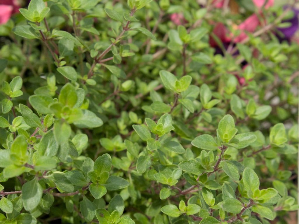 最後にクリーピングレモンタイムです。元々は立ち性のレモンタイムが、はい性になった感じで背が低く広がります。香りは立ち性のものよりレモンの香りが弱いので、もしかしたらレモンタイムとクリーピングタイムの交配で生まれた品種かもしれません。