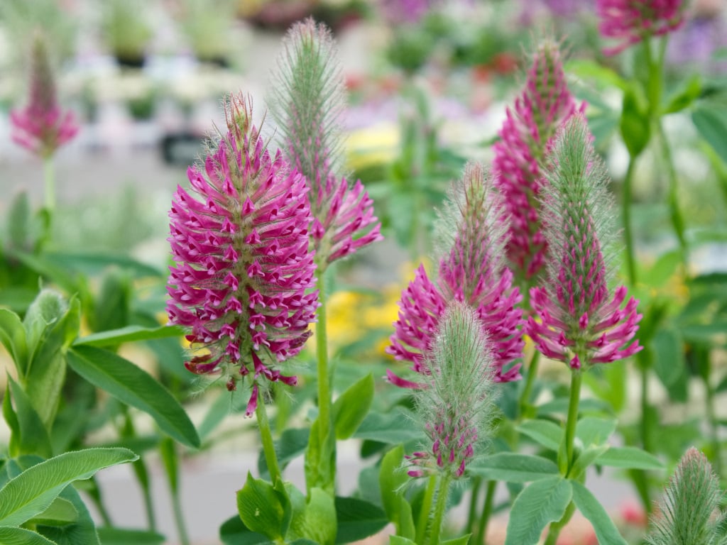 ストロベリーキャンドルとも違う種類で、全体にモコッとした咲き方になります。赤いクローバーにもいろいろありますね。耐寒性は強いそうですが、夏に枯れることが多いと教えてもらいました。