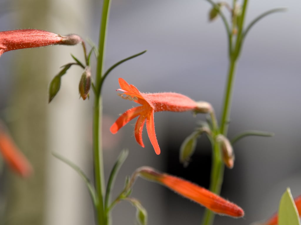 それから松葉のように細い葉の、ペンステモン・ピニフォリウスです。オレンジ色のほっそりしたお花がまばらに咲きます。