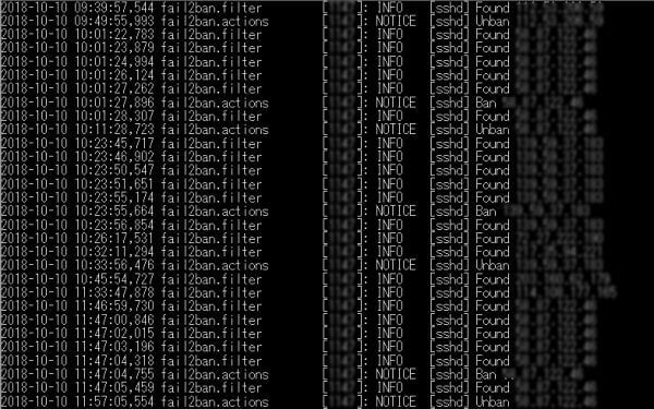 ログの見方を調べてみると、一定時間内に一定回数の認証を失敗すると、決められた時間BANしてログインできなくするよ、というサービスを提供してくれています。sshd のログがほとんどですが、設定次第では Web認証やら ftp やらいろいろ対象にしてくれます。優れものなんですね。