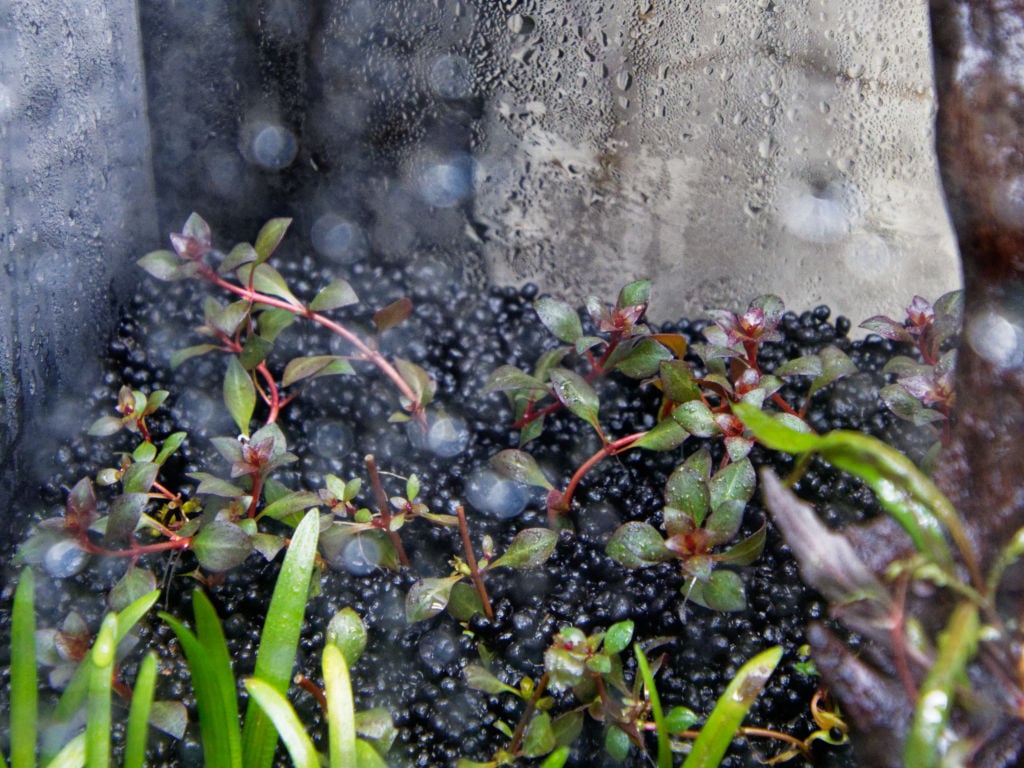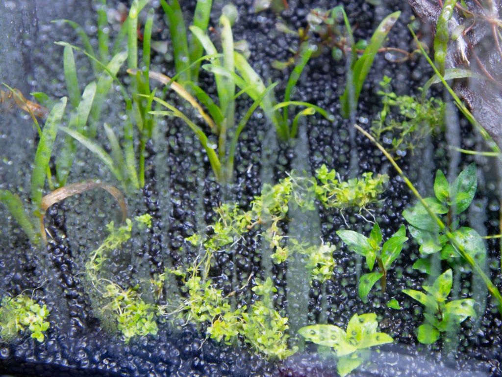 今回のソイルは吸着系という無肥料に近いものなので、肥料を欲しがる草には投与してあげないとうまく育ちません。かといって水草の植栽は園芸的には「挿し木」ですから、挿し木の培養土は無肥料・無菌が望ましいという鉄則から言えばこれでいいわけです。