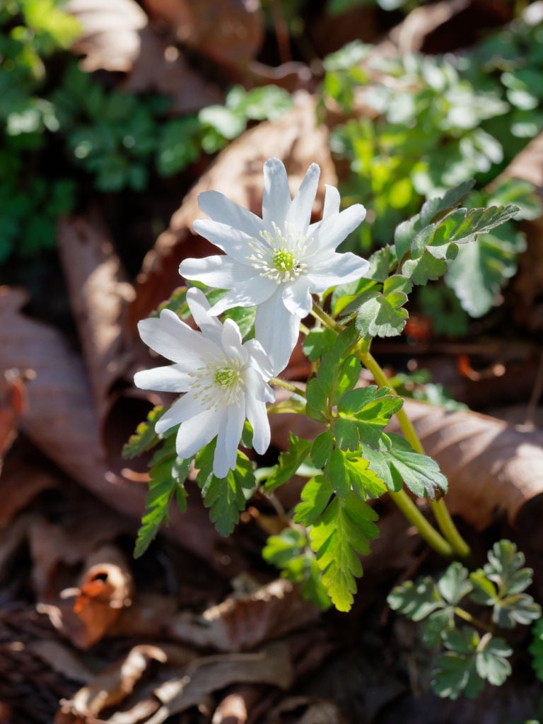 登りでは開いていなかったキクザキイチゲも、午後の日差しが当たるようになってきれいに咲いてくれました。山梨ではイチリンソウやアズマイチゲ、ニリンソウはわりとどこでも見られるのですが、キクザキイチゲは珍しいと思います。最初はイチリンソウと勘違いしていて、妙に花の小さなイチリンソウだなぁ……などと馬鹿なことを考えていました。
