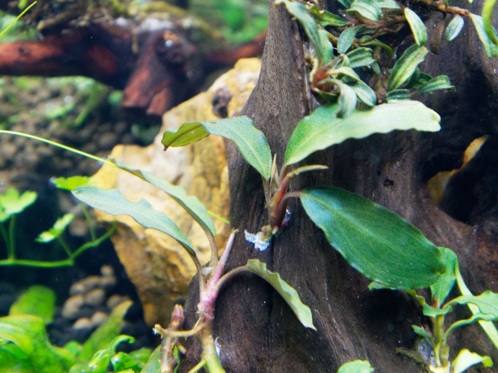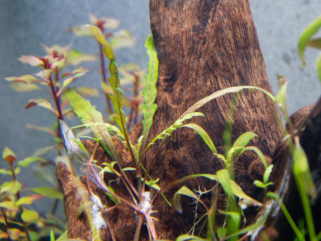 ラトナギリも葉先の方から赤みを帯びてきました。ミストの中でもそれなりに成長してくれていましたが、やっぱり水中の方が調子が出そうです。水草ジェルの白いはみ出しが目立っちゃいますね。早く脇目をたくさん出して隠して欲しいです。