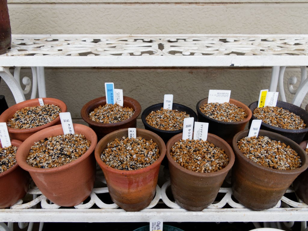 今年は昨年までと培養土を変えていて、十和田砂の微粒というのを中心に日光砂小粒、水苔粉、もみ殻炭を混合しています。クロカミランを譲って頂いた九州の方に、チドリは微粒くらいの細かい用土を使うと球根がきれいに育つと教えて頂いたので、昨年に比べると粒土間の隙間が少なくなっています。
