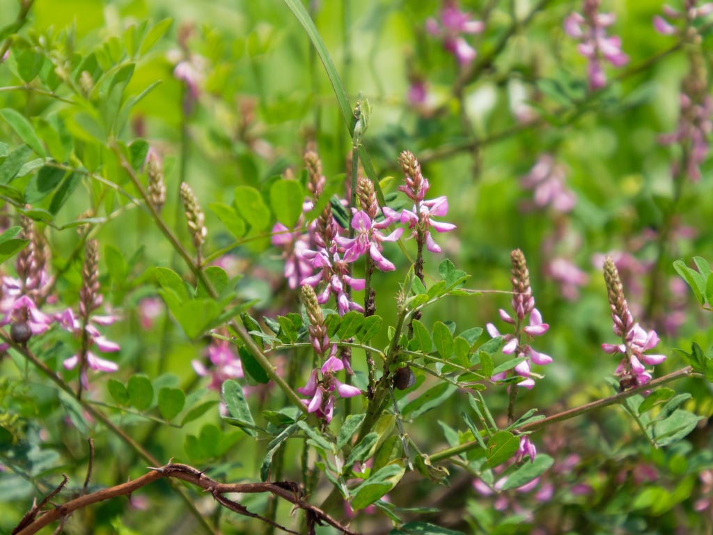 それからこのマメ科の花がコマツナギ。低山ハイクでどこでも見られるメジャーな低木です。ハギと同じで草ではなく樹なのですが、全体に小さくて宿根草かと思ってしまいます。同属のタイワンコマツナギは、インディゴという染料の材料になっていたそうです。