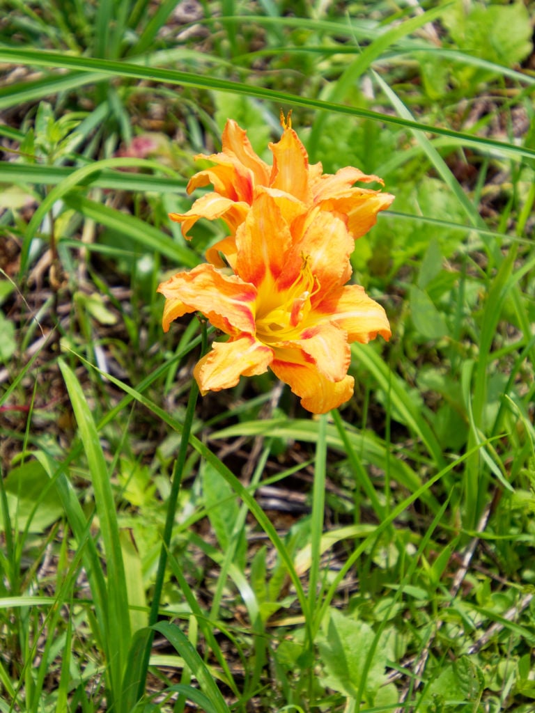 野生のヘメロカリス、ヤブカンゾウもあちこちに咲いています。かなり個体差がある植物で、この花は全体に整った咲き方できれいだと思いました。花壇に植えてあったら、ヘメロカリスの品種の何かだと思ってしまいそうです。
