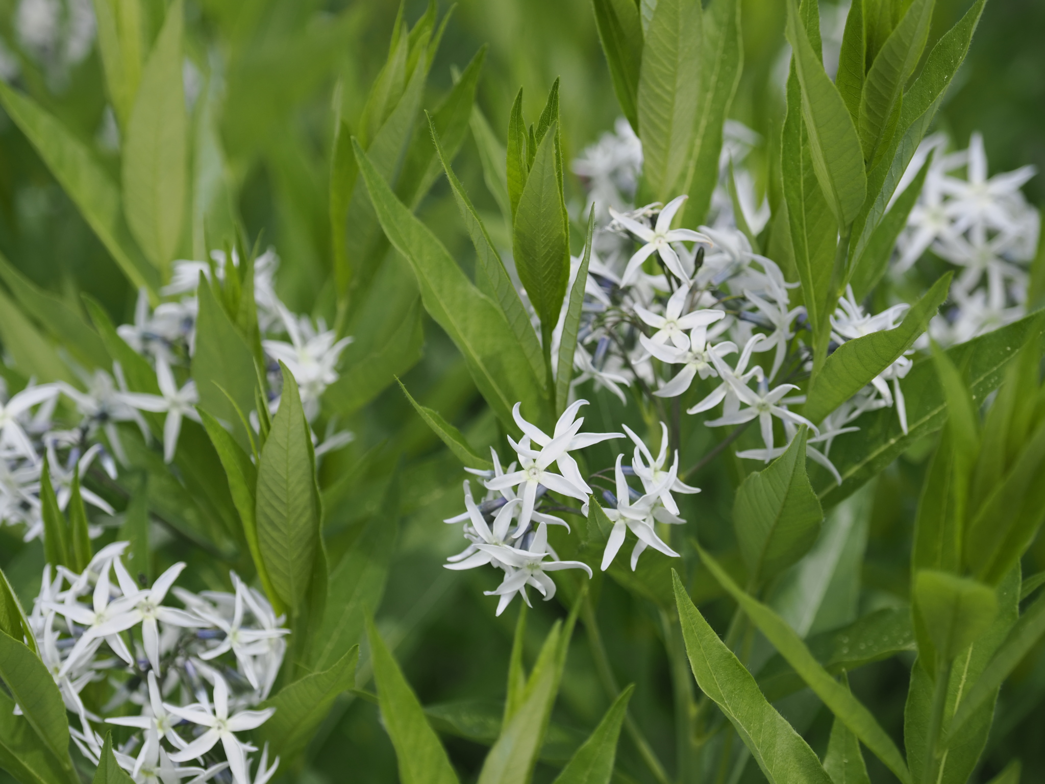 こちらはヤナギバチョウジソウ(Amsonia tabernaemontana)という、北米原産種です。花びらの先がカーブしていて、なんだか踊っているような、躍動感がある面白い花です。花付きの感じはチョウジソウに近いか、少し花が多いと思います。