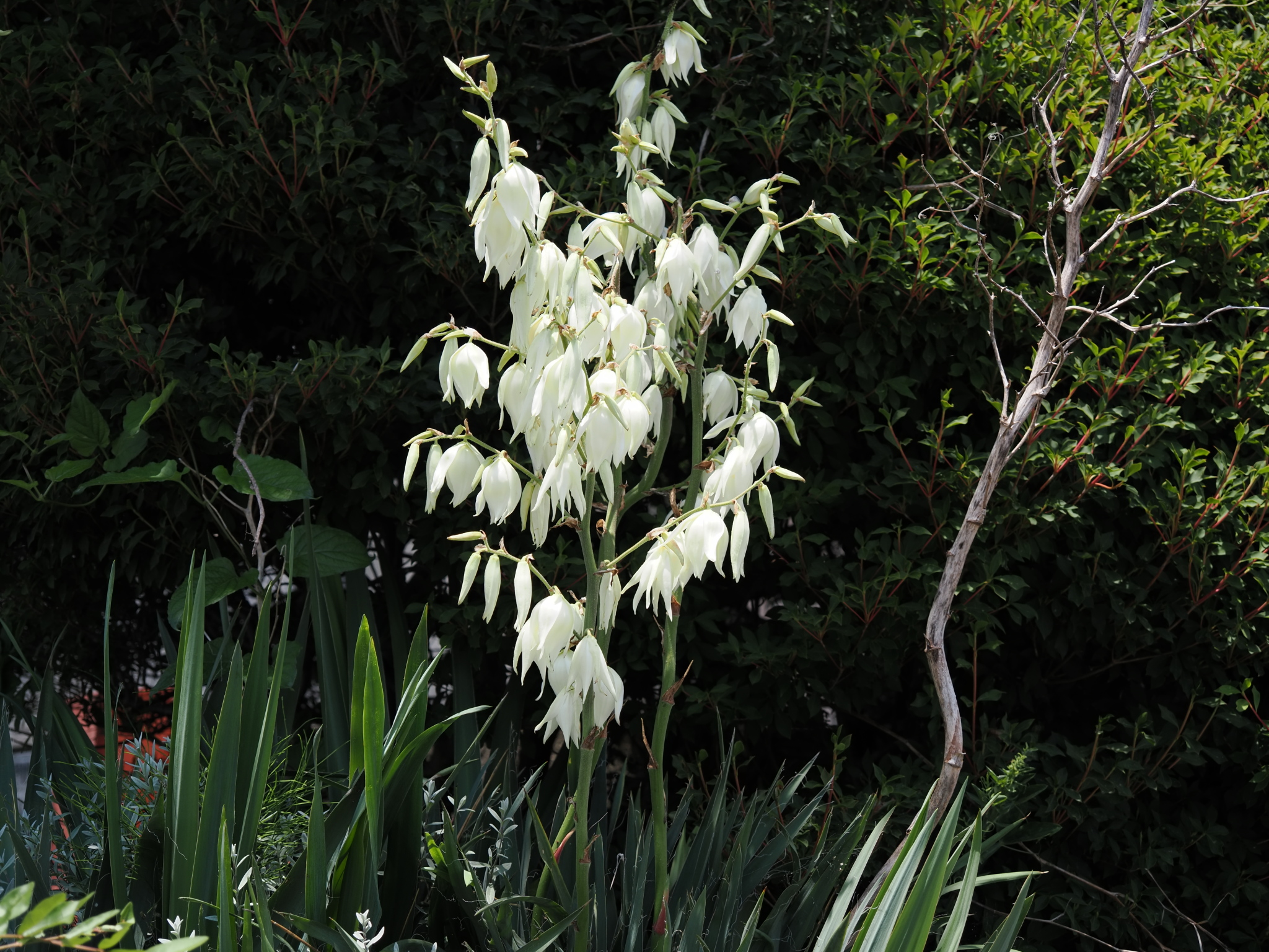 夕方から夜の間に良い香りがします。日中でも側に寄ると甘い感じの香りがあります。キミガヨランも含む Yucca属の花は、夜に香るものが多いようです。スズメガの中間が花粉を媒介するのでしょうか。