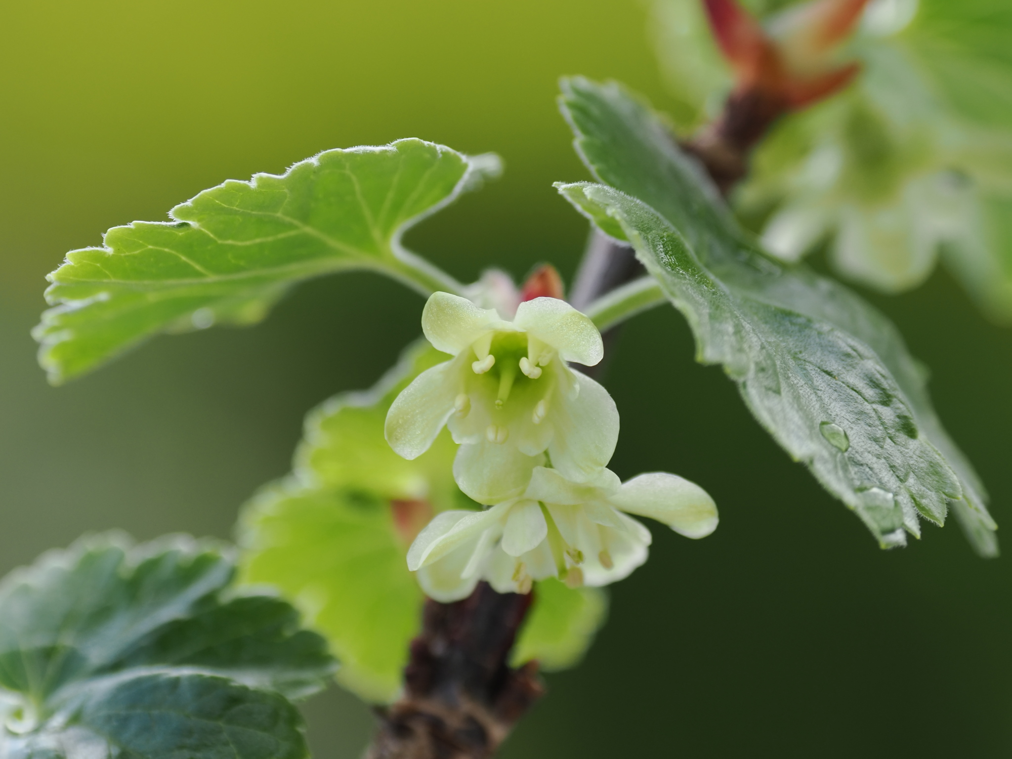 果実は硬い毛で覆われた1cmくらいの緑色の実で、縦長であまりスグリっぽくはありません。味もスグリと言うよりキウィフルーツに似た味で、甘味が少ない酸っぱいキウィをイメージするとそれっぽいと思います。スグリと言えばカシスに代表されるジュースやジャム、果実酒に利用される果実なので、生食向きではないと思われていますが、このヤシャビシャクに限っては生で食べてもそれなりに美味しいと感じる人がいるのではと思います。