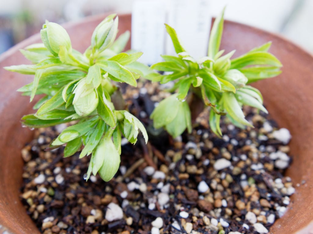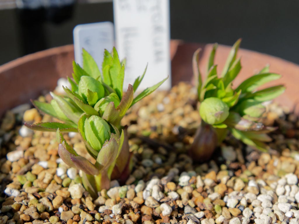 だいぶ久しぶりの記事になってしまいました。今年は春が早くて、近所では福寿草が咲いたり庭植えのクリスマスローズが咲いていたりします。それなのにわが家のデュメトルムはまだこんな感じです。ふっくらしたつぼみは見えていますが、花茎を伸ばすタイミングを見計らっているようです。