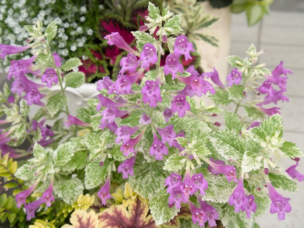 パイナップルに似た香りがします。ハーブとしてより斑入りのカラーリーフとして植えてる人が多いですね。実際にはお花もきれいで花物として見ても十分な美しさがあると思います。