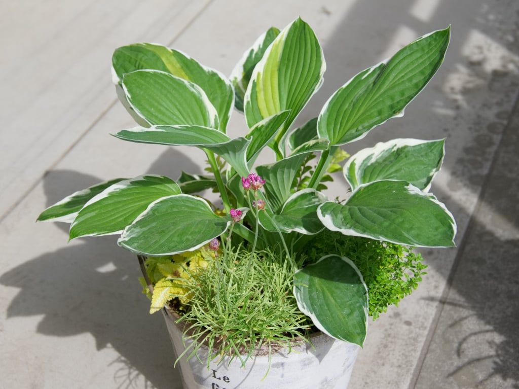 カラーリーフを集めた寄せ植えに植えていたもので、ようやく見頃になりました。斑入り種なので「ヴァリエガータ」と呼ばれることもあります。以前に比べると斑の入り方が安定して、緑葉や幽霊(白葉)は出にくくなっています。