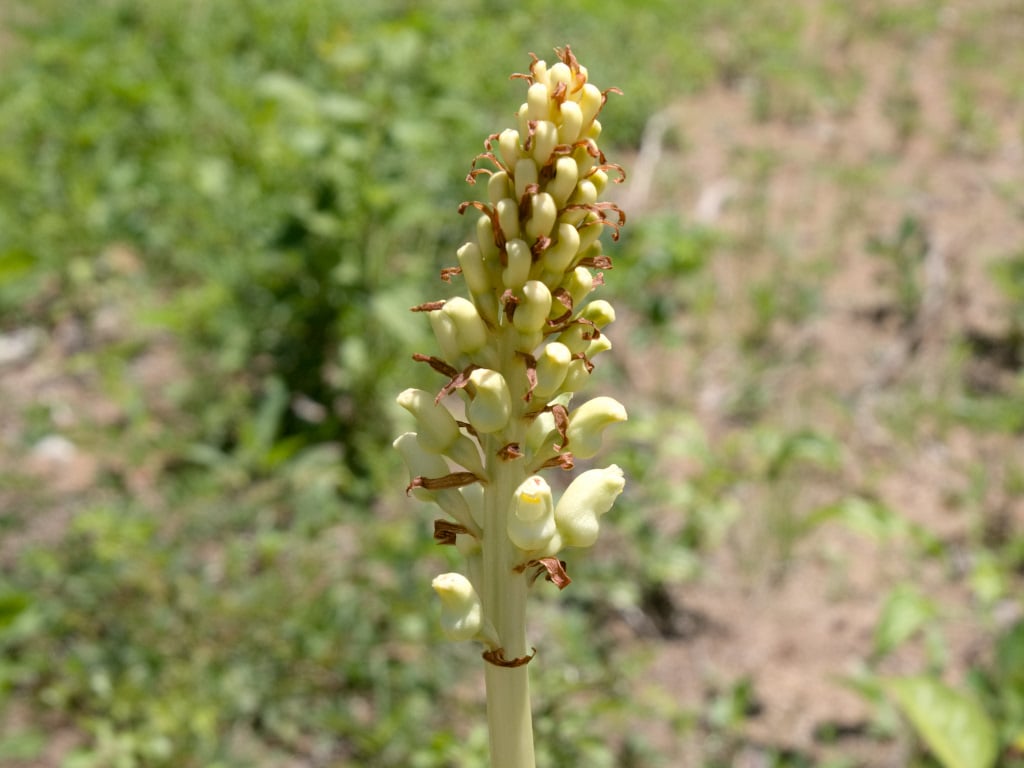 先日から紹介していた、巨大つくしがようやく咲きました。アオテンマです。オニノヤガラという腐生蘭の素心変異ですね。オニノヤガラ自体は茎に茶色の斑模様が入りますし、花も茶褐色になります。