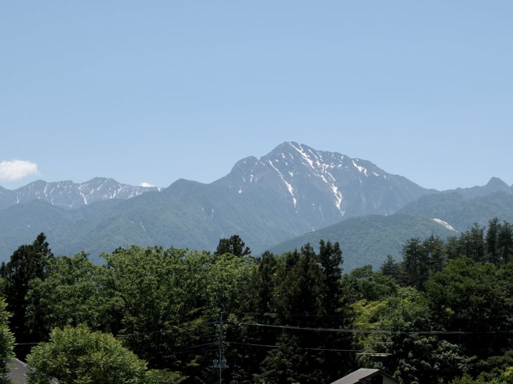 今日は天気が良いので甲斐駒ヶ岳がきれいに見えます。まだ下の方まで残雪が残ってます。夏山シーズンまでは遠そうです。