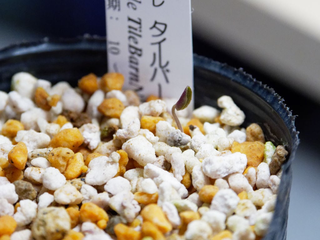 先月に蒔いた原種シクラメンの発芽が始まりました。最初はミラビレの品種の「タイルバーン・ニコラス」です。やっぱりタネが大きい分、発芽も早いのかなと思います。コウムは80日くらい、ロディウムなどレパンダム系は120日かかるそうなので、種類ごとにだいぶ差があります。