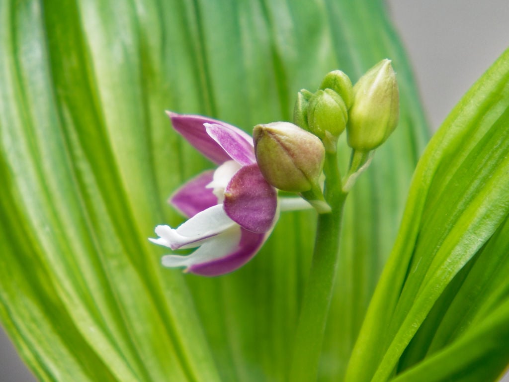 横顔はこんな感じで、もっと開くかもしれませんが今は抱え咲きでかわいい感じです。エビネのことはよく知らないのですが、いわゆるドワーフタイプを「ちゃぼ」とよぶんですかねー? 兜咲き? という側花弁の先が肉厚でこぶみたいになる、花の小さな系統を見たことがありますが、あれとは全く違う感じです。