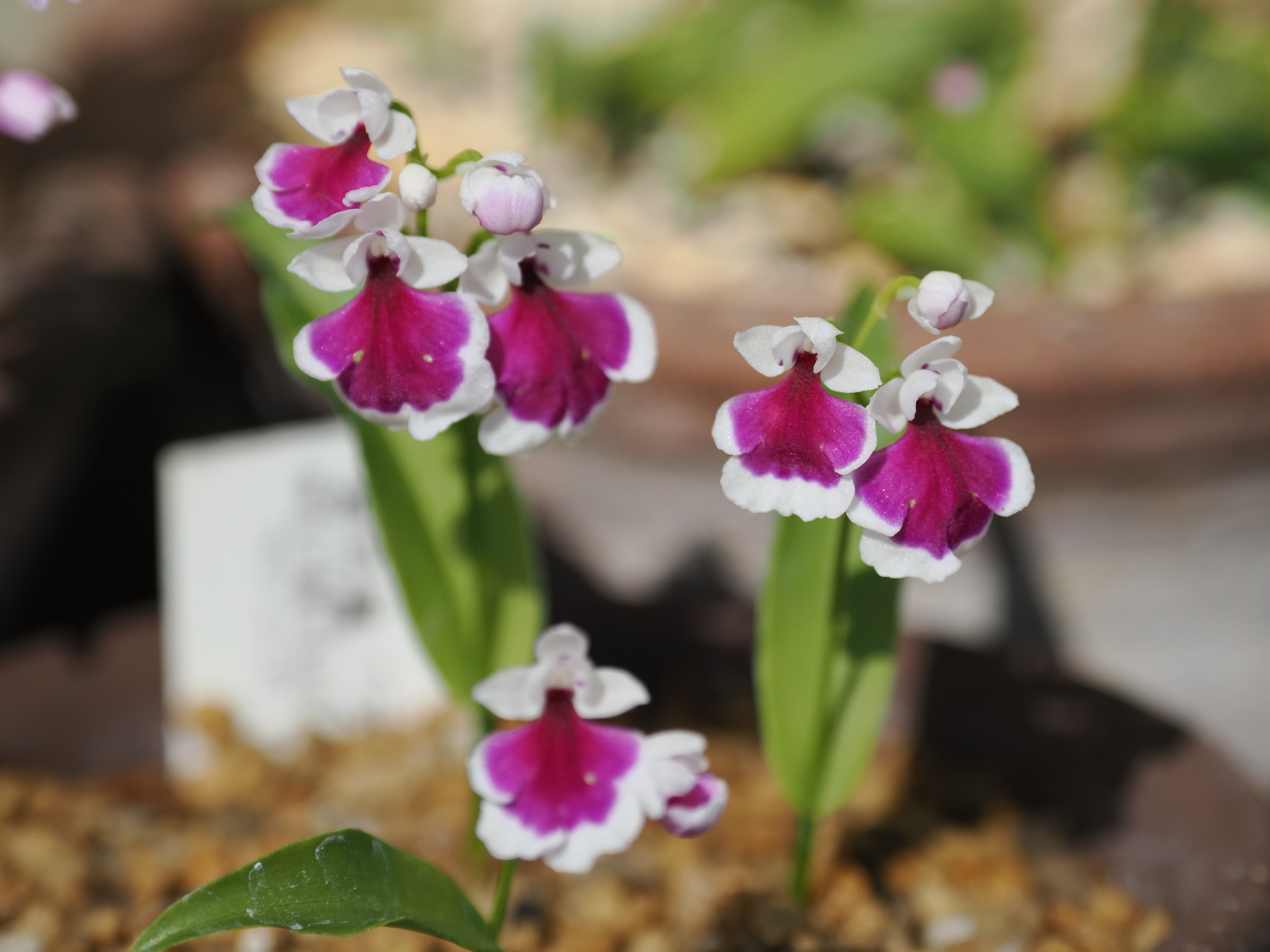 鈴姫という斑紋花で有名な品種があるそうです。私は写真ですら見たことは無いのですが、鈴姫を親に持つ細かな点条が唇弁全体に広がる花を鈴姫系と呼んでいます。この呼び方が正しいのか、正しくないのかは分かりません。Dream Seed さんの交配なので、もっと色々な複雑な系統になっていると思いますが、整った花型でスッキリした模様なのが気に入っています。