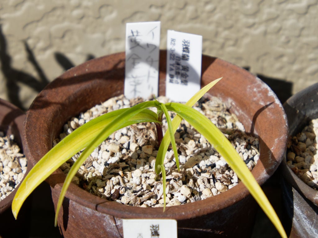 オークションで入手しましたが、そのときの名前がイワチドリの黄金葉でした。ウチョウランなのは間違いないので、勘違いされたのかと思います。おそらく実生で生まれた葉変わりの品種と思います。