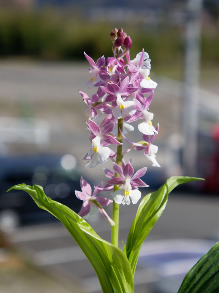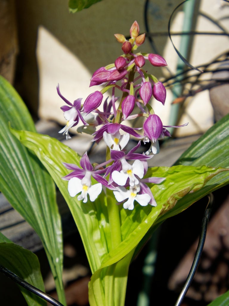 先日紹介した「御代の旗」と同じくラブリーガーデンさんから入手した、新島産のニオイエビネ「紫聖殿」です。御蔵紫聖殿というニオイエビネが濃い紫の梅弁で有名ですが、それとは別の品種です。おそらくですが御代の旗と同じ時代に選抜された古くからあるニオイエビネだと思います。