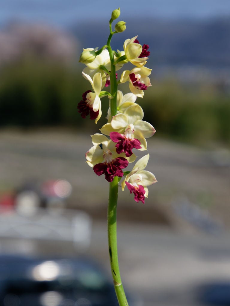 咲くときに寒さに当ててしまったせいか、花茎の伸びが中途半端で止まってしまってます。本来はもっとすっきり伸びる品種だと思います。四国のラブリーガーデンさんから購入しました。