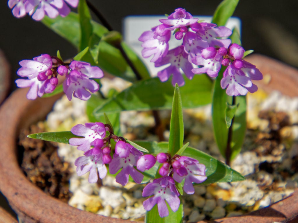 イワチドリは日本に自生する野生ランで、地際から展開する一枚の葉と、チドリに似た可愛らしい花が特徴の原種です。わたしが子供の頃にエビネのブームがあったのですが、この頃に羽蝶蘭や岩千鳥もブームになり始めました。