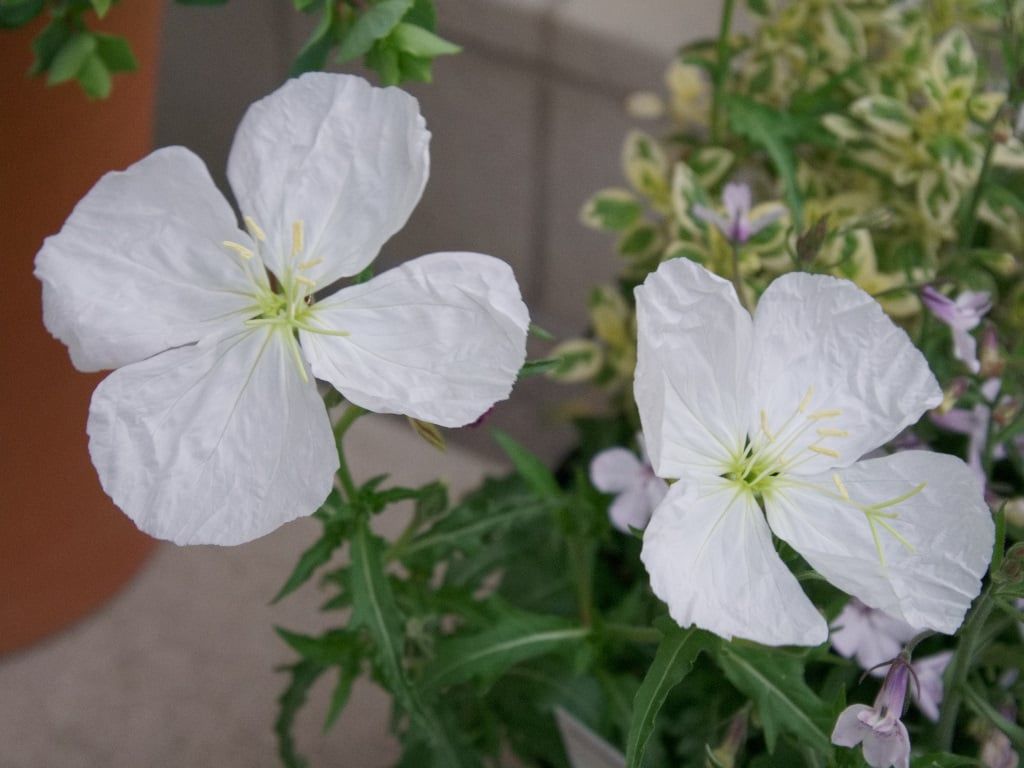 だいぶ株が大きくなって、一度に二つ咲いてくれました。真っ白で大きな花は予想をうらぎる感じできれいです。
