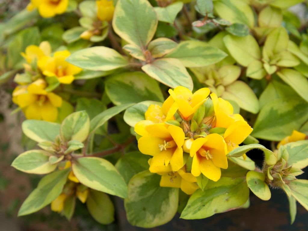 リシマキア・リッシーが咲き始めました。以前につぼみの状態をご紹介したものです。厚味のあるプラスチックな感じの濃い黄色のお花は、浅い緑や斑のペールグリーンに映えてきれいです。
