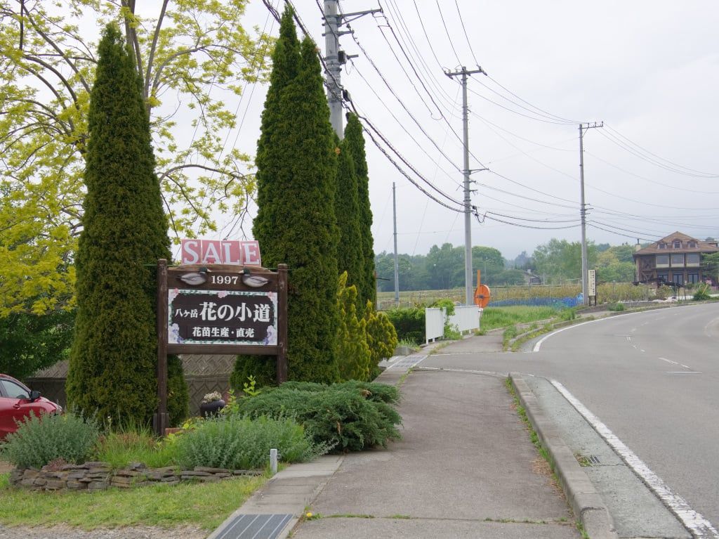 GW後半の二日目に花くるりんの続きで「FLOWER HEARTS 八ヶ岳」さんに行ってきました。前日3日と違って朝から良い天気。暑くなりそうな予感の通り、小淵沢でも結構きつめの日射です。県道17号線沿いのビニールハウスの連棟が見えたらそこが FLOWER HEARTS さんです。