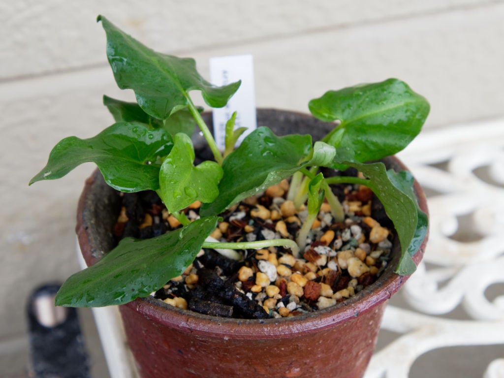 わたしが高校生くらいの頃に初めて見かけたように思います。ニオイハンゲというバナナのような香りのする小型のサトイモ類があって、それに似た感じで花に特徴のある小型の山野草という雰囲気。