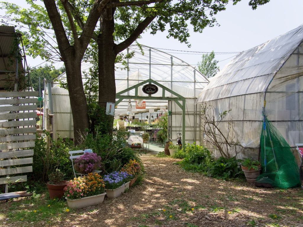 GW後半の二日目に花くるりんの続きで「FLOWER HEARTS 八ヶ岳」さんに行ってきました。前日3日と違って朝から良い天気。暑くなりそうな予感の通り、小淵沢でも結構きつめの日射です。県道17号線沿いのビニールハウスの連棟が見えたらそこが FLOWER HEARTS さんです。